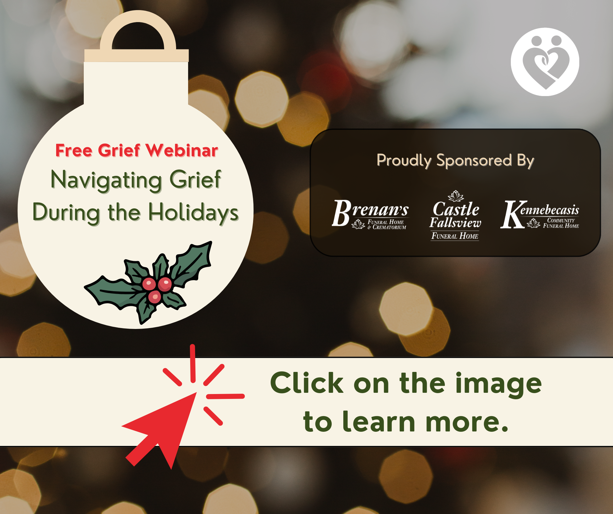 We are a registered charity that’s mission is to help those dealing with grief due to loss or life’s challenges. We are 100% community funded by local businesses, grants and people like yourself.